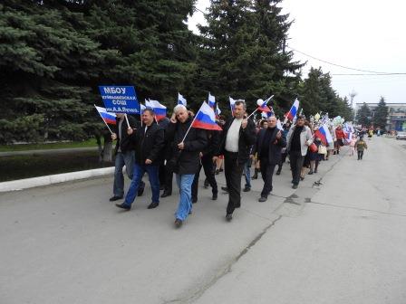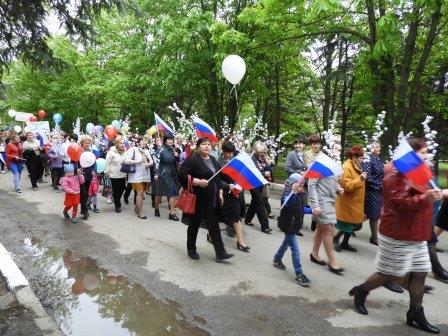 Коллектив нашей школы принял участие в праздничном шествии под лозунгом «Национальные проекты в поддержку созидательного труда».