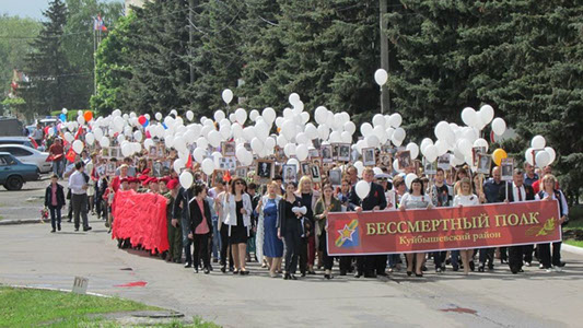 А в праздничный день 9 мая коллектив школы принял участие во всероссийской акции «Бессмертный полк» и в митинге посвященному празднованию 74-й годовщины Победы советского народа в Великой Отечественной войне 1941-1945 годов. На митинге прошел парад лучших юнармейских отрядов Куйбышевской школы.
