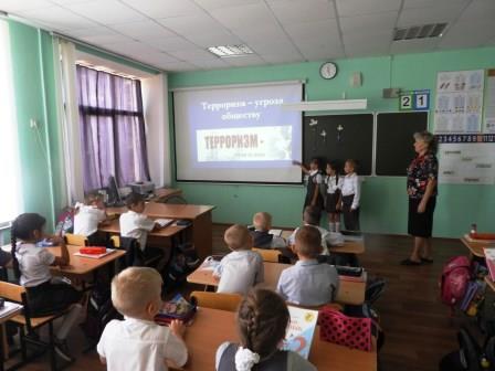 В России ежегодно отмечается особая дата - День солидарности в борьбе с терроризмом. С целью формирования уважительного отношения к окружающим, негативного отношения к насилию и террору, в школе были проведены мероприятия посвященные этой памятной дате, классные часы «Терроризм – угроза обществу», уроки памяти с участием сотрудников МЧС, тематические линейки посвященные памяти жертв Беслана с демонстрацией видеороликов, конкурс листовок и рисунков «Я - рисую мир».