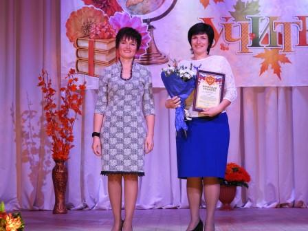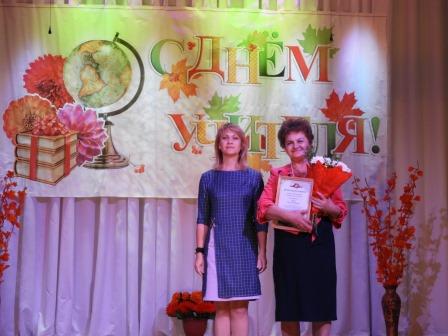 В этот день педагоги нашей школы приняли участие в торжественной церемонии чествования педагогических работников образовательных организаций Куйбышевского района, посвященной Международному Дню Учителя. За большой вклад в развитии системы образования Куйбышевского района педагогам нашей школы были вручены награды. Присвоено почетное звание «Почетный работник сферы образования Российской Федерации» И.В.Рычко, заместителю директора по учебно-воспитательной работе. Благодарственным письмом министерства общего и профессионального образования Ростовской области награждена З.А.Демченко. Почетная грамота главы Администрации Куйбышевского района была вручена О.П.Литюк. Почетные грамоты отдела образования Администрации Куйбышевского района вручены: О.Н.Боженко, О.А.Головченко, А.С.Кудриной, С.В.Сердюковой. Н.С.Штенская вошла в число лучших участников районного конкурса программ «Инновационные педагогические идеи». Дипломом I степени районного конкурса «Учитель года – 2018» в номинации «Педагогический дебют» награждена М.В.Сумец.