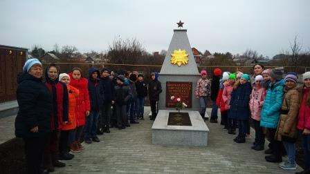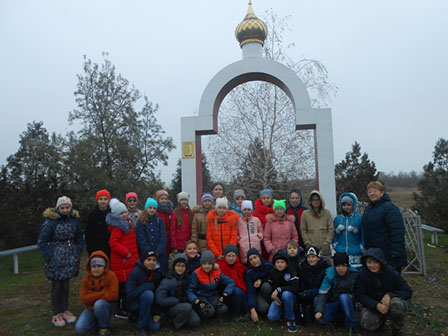 10 ноября обучающиеся 5 «А» и 5 «Г» классов совместно с классными руководителями Т.Д. Михно, Ю.И. Боженко и представителем из числа родителей совершили экскурсию к Мемориальной арке близ села Кумшатское, установленной на месте казни миллеровских подпольщиков партизанского отряда, действовавшего на территории села Миллерово во время немецкой оккупации 1942-1943 гг. Учитель истории Т.Д. Михно рассказала присутствующим о подвиге и героической стойкости девяти юных партизан, которые 21 января 1943 г. за 27 дней до освобождения села были расстреляны фашистами и сброшены в колодец. Самым юным из партизан был Жора Ковалевский, чье имя сейчас носит Миллеровская школа.