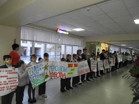 3 декабря с 8.00 часов до 9.00 часов была проведена Акция «Чтобы помнили!». Ребята (1-11 классы) обратились с призывом помнить Героев Отечества. Из плакатов с обращениями была