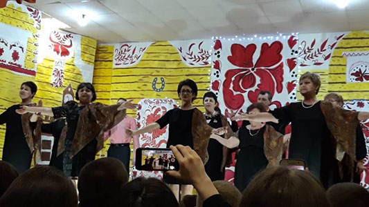 А в 16:00 на площади перед школой состоялся фестиваль военной песни «Пусть гремит Салют Победы!». В исполнении сводных хоровых коллективов прозвучали песни, с которыми шли в бой, которые слушали в минуты затишья между боями и с которыми встречали в победном мае Героев-освободителей.