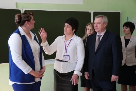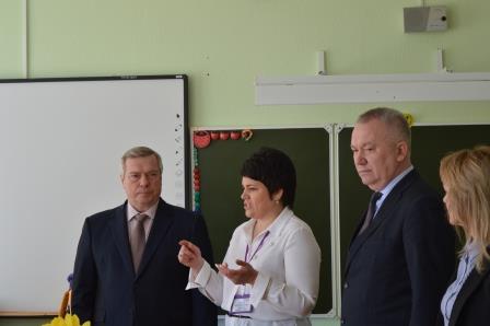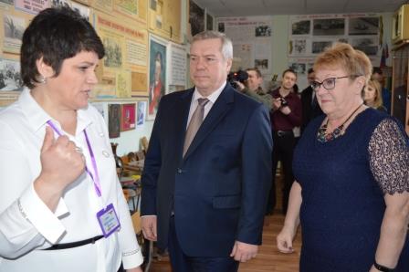 Губернатор Ростовской области Василий Юрьевич Голубев с рабочим визитом посетил Куйбышевский район, став почетным гостем нашей Куйбышевской школы. В школе созданы замечательные условия для развития и обучения детей, работает творческий и инициативный коллектив педагогов. Все это было представлено Губернатору области директором школы Еленой Анатольевной Кучиной.