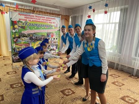 Команда ЮИД МБОУ Куйбышевской СОШ им. А. А. Гречко посетили ДОУ «Колокольчик» с целью участия в совместной акции «ЮИД и ИПИД вместе за безопасность на дороге!».
