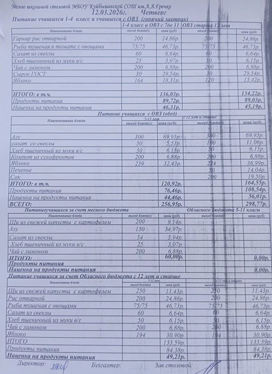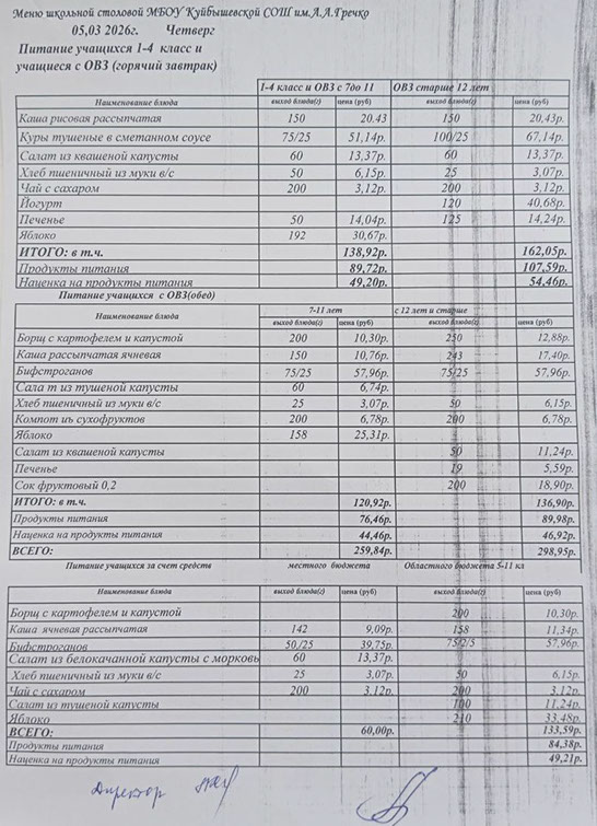 ИНФОРМАЦИЯ О НАЛИЧИИ ДИЕТИЧЕСКОГО МЕНЮ В МБОУ КУЙБЫШЕВСКОЙ СОШ ИМ.А.А.ГРЕЧКО.