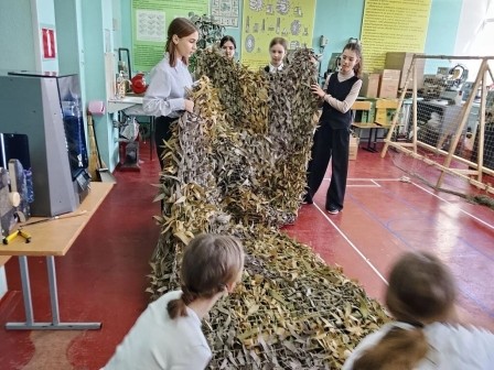 Обучающиеся нашей школы помогают военнослужащим СВО, плетя маскировочные сети. Техника плетения проста, но требует времени. Ребята понимают, что такие сети скрывают от противника технику, инженерные сооружения и укрытия бойцов. Каждый, кто участвует в процессе, верит в спасение жизней.