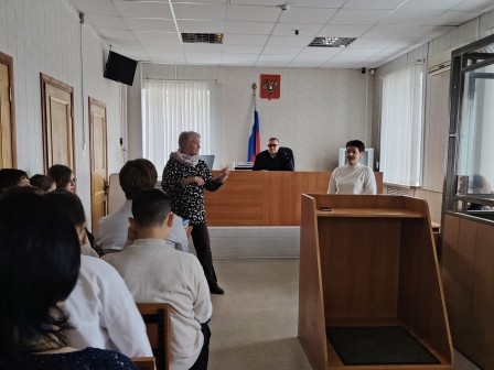 Этот урок проходил не в стенах школы, а в настоящем зале судебных заседаний. В качестве спикера выступил судья районного суда в с.Куйбышево Бондарев Сергей Иванович.