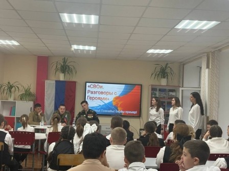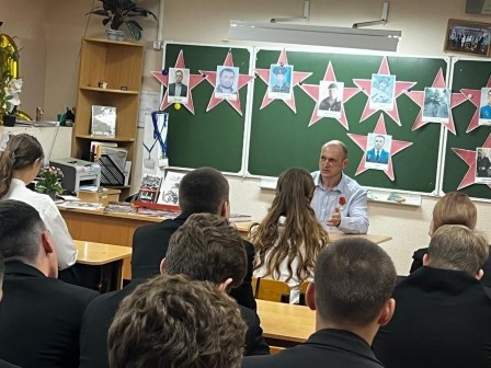1 декабря, в День воинской славы, в актовом зале школы прошла встреча с ветераном боевых действий специальной военной операции, участником Красно-Лиманского и Курского направлений. Ворона Владислав Юрьевич награжден двумя медалями за Отвагу, медалью за операцию по денафикации и демилитаризации Украины, а также медалью Воинской доблести 2-й степени. Гость поделился своим жизненным путем, ценностью дружбы и взаимовыручки. В неформальной беседе он затронул темы долга, ответственности и поддержки со стороны родных и товарищей. Разговор был искренним и глубоким, ребята задавали волнующие их вопросы. В завершение встречи участники поблагодарили Владислава Юрьевича за открытость и честные ответы. Такие диалоги представляют собой бесценный опыт, позволяющий молодому поколению глубже понять понятия долга, отваги и самопожертвования, а также увидеть в героях людей с сильным характером и стойкостью духа.