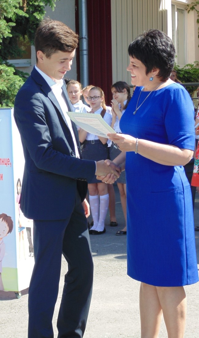 Директор школы Е.А. Кучина и заместитель директора по учебно-воспитательной работе И.Г.Татевосян вручили похвальные листы «За отличные успехи в учении». На церемонии награждения были представлены различные номинации: «Микс успехов и достижений», « Спорт», «Школа безопасности, туризм», «Гражданско-патриотическое воспитание», «Творчество», «Юные инспекторы движения», «Активисты центра ученического самоуправления «Мы», «Эко-патруль». Обучающиеся школы получили ценные памятные подарки от Администрации района. Победителям в номинации «Эко-патруль», ребятам 7 «Б», 6 «А» и 8 «А» классов директор школы Е.А. Кучина вручила денежные призы и произнесла долгожданную фразу, вошедшую в число добрых традиций школы: «Ура, каникулы!». В честь успешного окончания учебного года, в завершении праздника прозвучали музыкальные поздравления от вокальной группы третьих классов и творческого коллектива «Вдохновение».