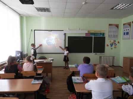 Во время проведения классных тематических линеек в актовом зале школы дети смогли принять участие в флешмобе «Мы в зелёном». Каждому классному коллективу для просмотра была предоставлена интересная презентация «Удивительная природа»
