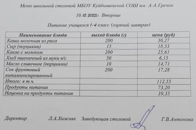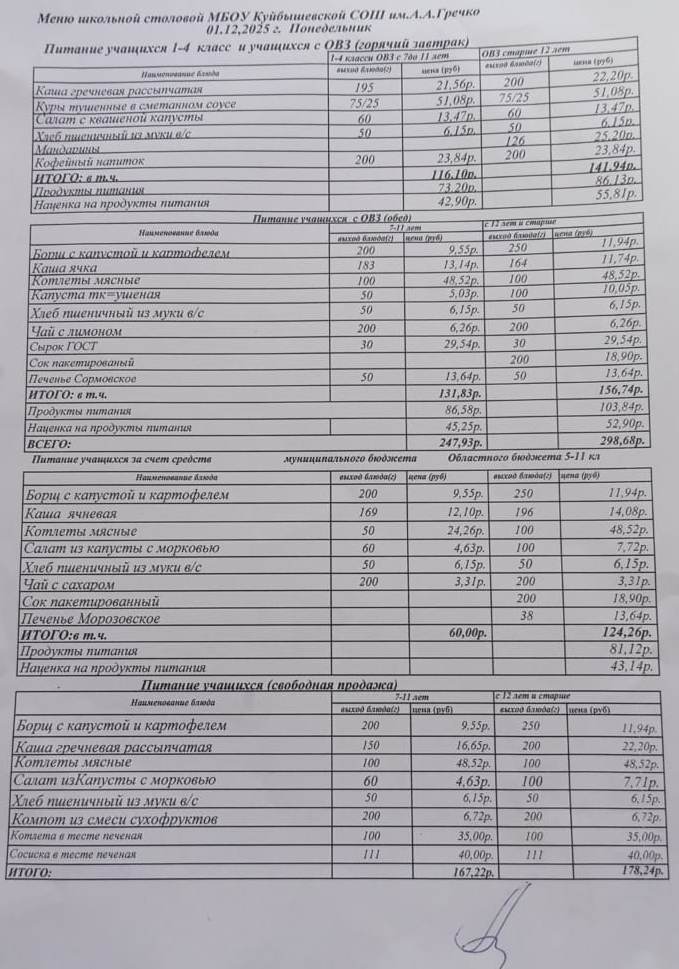 ИНФОРМАЦИЯ О НАЛИЧИИ ДИЕТИЧЕСКОГО МЕНЮ В МБОУ КУЙБЫШЕВСКОЙ СОШ ИМ.А.А.ГРЕЧКО.