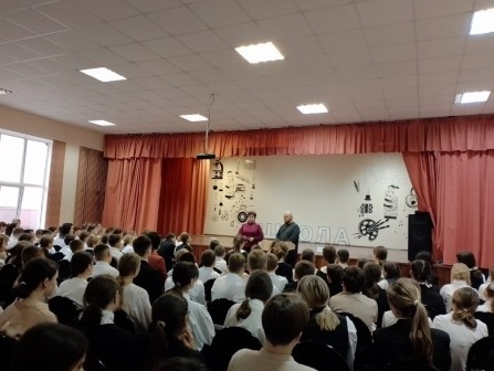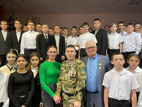 1 декабря, в День воинской славы, в актовом зале школы прошла встреча с ветераном боевых действий специальной военной операции, участником Красно-Лиманского и Курского направлений. Ворона Владислав Юрьевич награжден двумя медалями за Отвагу, медалью за операцию по денафикации и демилитаризации Украины, а также медалью Воинской доблести 2-й степени. Гость поделился своим жизненным путем, ценностью дружбы и взаимовыручки. В неформальной беседе он затронул темы долга, ответственности и поддержки со стороны родных и товарищей. Разговор был искренним и глубоким, ребята задавали волнующие их вопросы. В завершение встречи участники поблагодарили Владислава Юрьевича за открытость и честные ответы. Такие диалоги представляют собой бесценный опыт, позволяющий молодому поколению глубже понять понятия долга, отваги и самопожертвования, а также увидеть в героях людей с сильным характером и стойкостью духа.