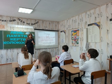 По окончании киноурока обучающиеся 8-х и 10-х классов приняли участие в возложении цветов.