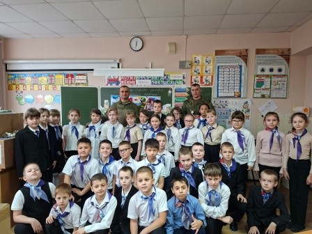 В Год Защитника Отечества, в преддверии Дня Героев Отечества, 27 ноября 2025 года обучающиеся 3 «А» и 3 «Б» классов встретились с военнослужащими 61-й гвардейской зенитной ракетной бригады противовоздушной обороны Российской Федерации.